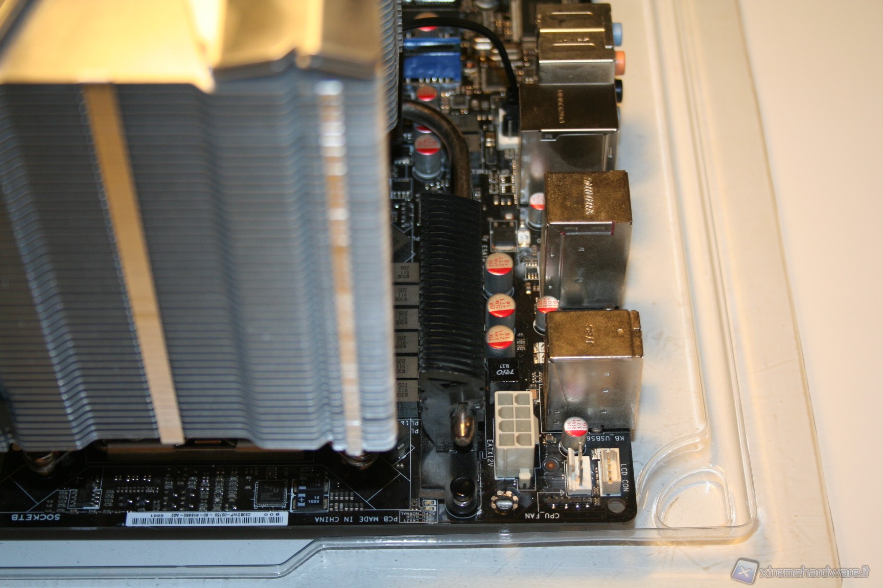 Fatto questo siamo pronti per il montaggio della/e ventola/e sul dissipatore, ed infine al montaggio nel case. Abbiamo posizionato il dissipatore con la ventola rivolta verso i banchi di RAM. Questa è la configurazione migliore in quanto si crea un flusso che tende a spingere l’aria calda verso l’esterno del cabinet (nella parte posteriore).